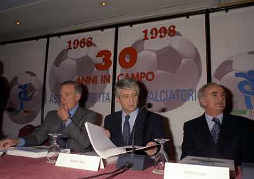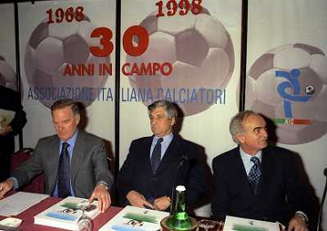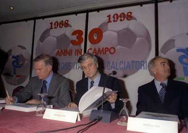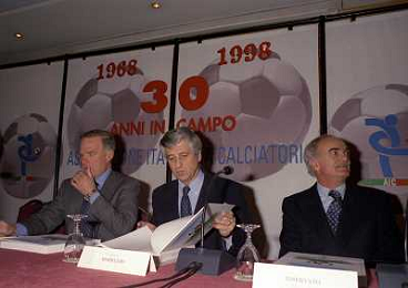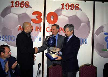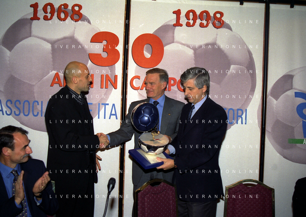 MILANO 14-12-1998 FESTA DI GALA DELL'ASSOCIAZIONE CALCIATORI PER I 30 ANNI DI ATTIVITA NELLA FOTO CANDIDO CANNAVO-LUCIANO NIZZOLA E SERGIO CAMPANA AG ALDO LIVERANI SAS