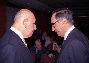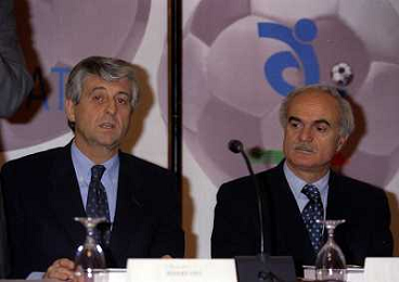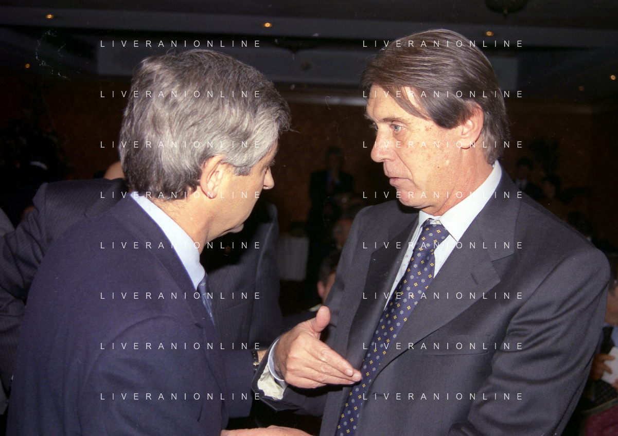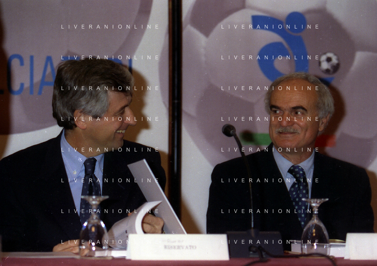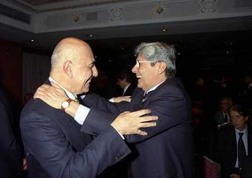 MILANO 14-12-1998 FESTA DI GALA DELL'ASSOCIAZIONE CALCIATORI PER I 30 ANNI DI ATTIVITA NELLA FOTO SERGIO CAMPANA E GIANCARLO ABETE AG ALDO LIVERANI SAS