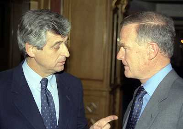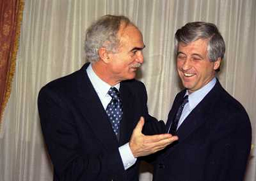 MILANO 14-12-1998 FESTA DI GALA DELL'ASSOCIAZIONE CALCIATORI PER I 30 ANNI DI ATTIVITA NELLA FOTO FRANCO CARRARO E CESARE MALDINI AG ALDO LIVERANI SAS