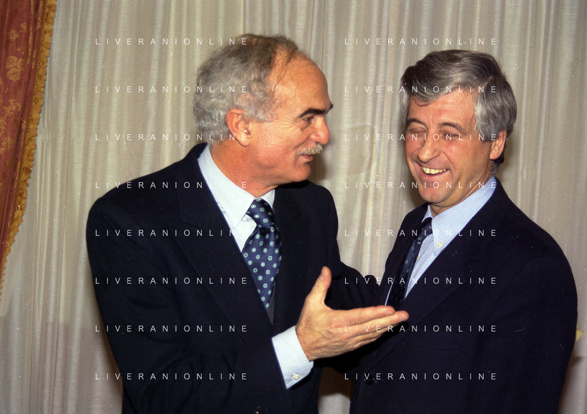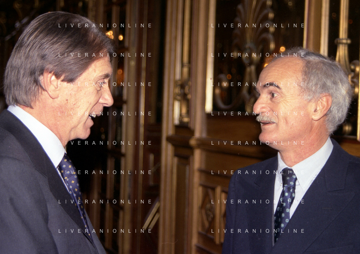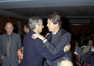 MILANO 14-12-1998 FESTA DI GALA DELL'ASSOCIAZIONE CALCIATORI PER I 30 ANNI DI ATTIVITA NELLA FOTO GIANNI RIVERA E SANDRO MAZZOLA AG ALDO LIVERANI SAS