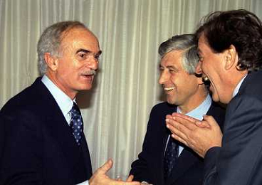 MILANO 14-12-1998 FESTA DI GALA DELL'ASSOCIAZIONE CALCIATORI PER I 30 ANNI DI ATTIVITA NELLA FOTO FILIPPO GRASSIA CON GIANNI RIVERA E CANDIDO CANNAVO AG ALDO LIVERANI SAS