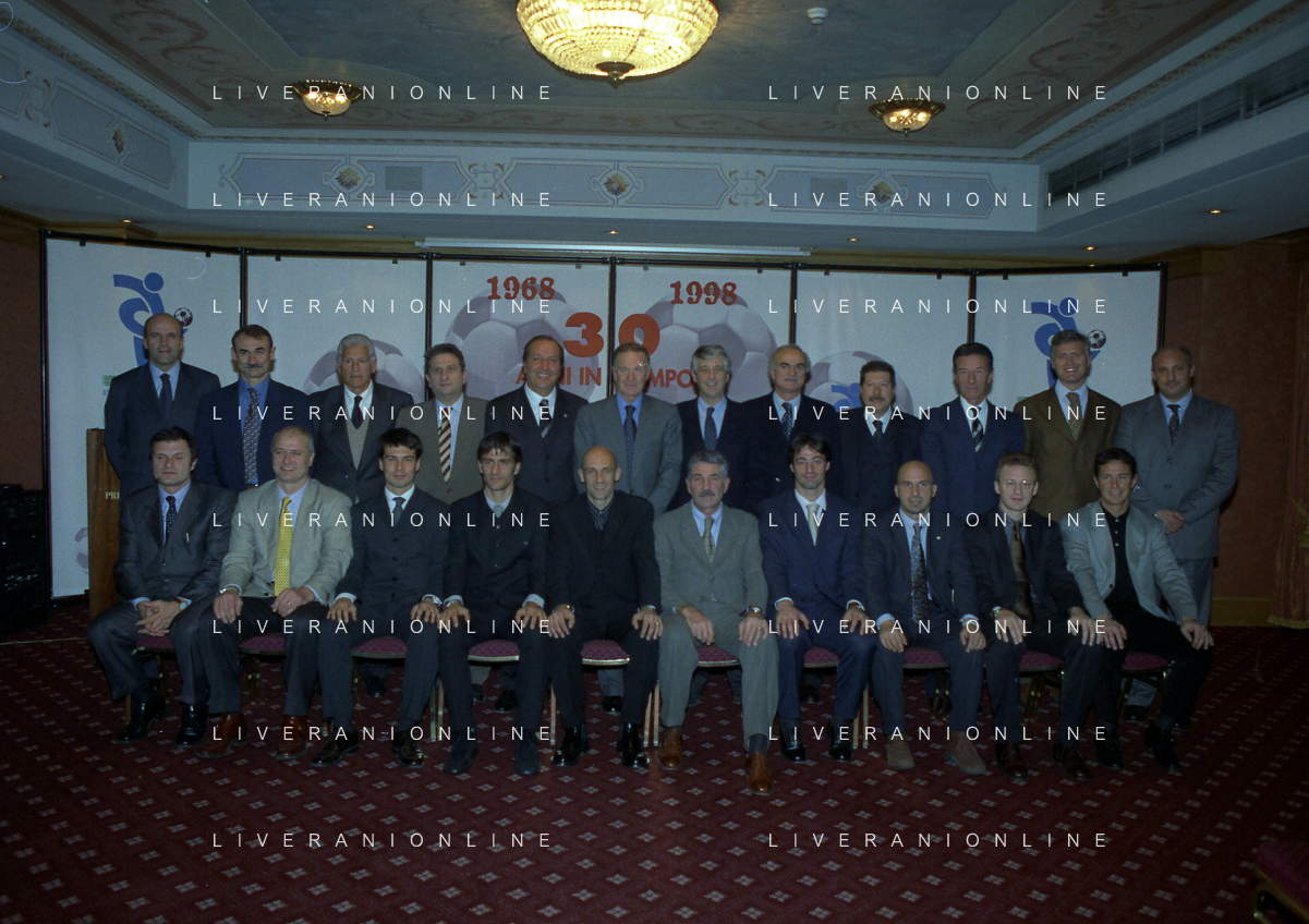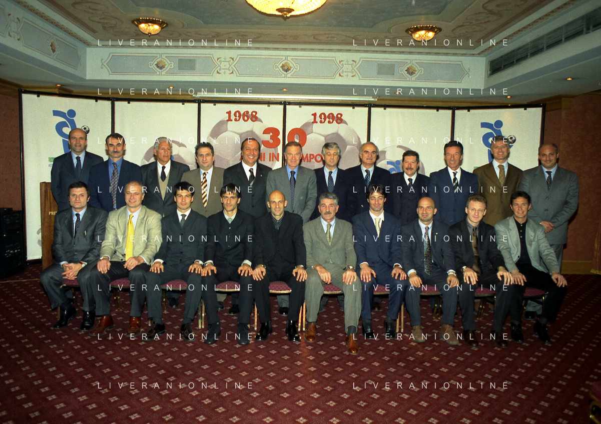 MILANO 14-12-1998 FESTA DI GALA DELL'ASSOCIAZIONE CALCIATORI PER I 30 ANNI DI ATTIVITA NELLA FOTO IL GRUPPO AG ALDO LIVERANI SAS