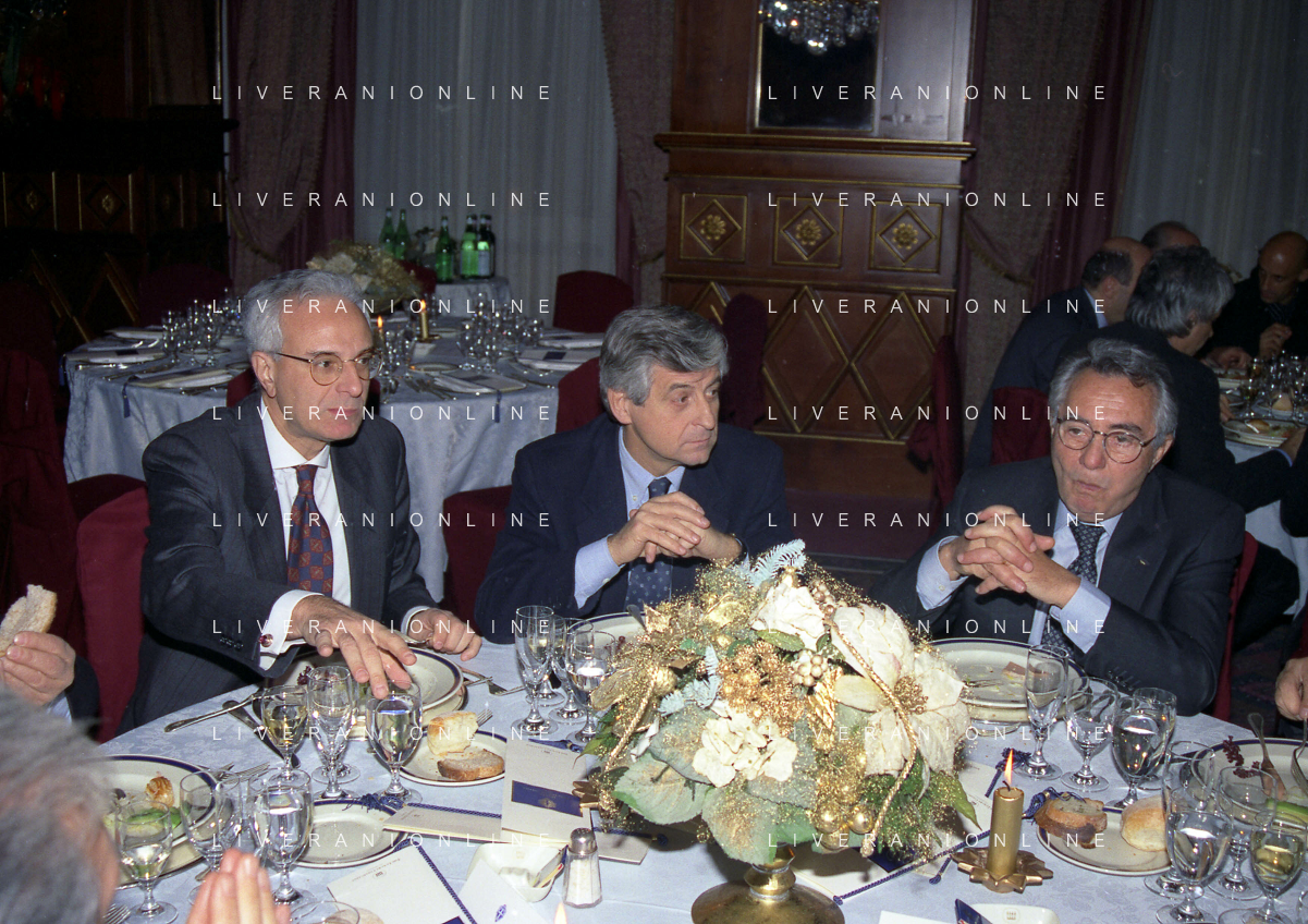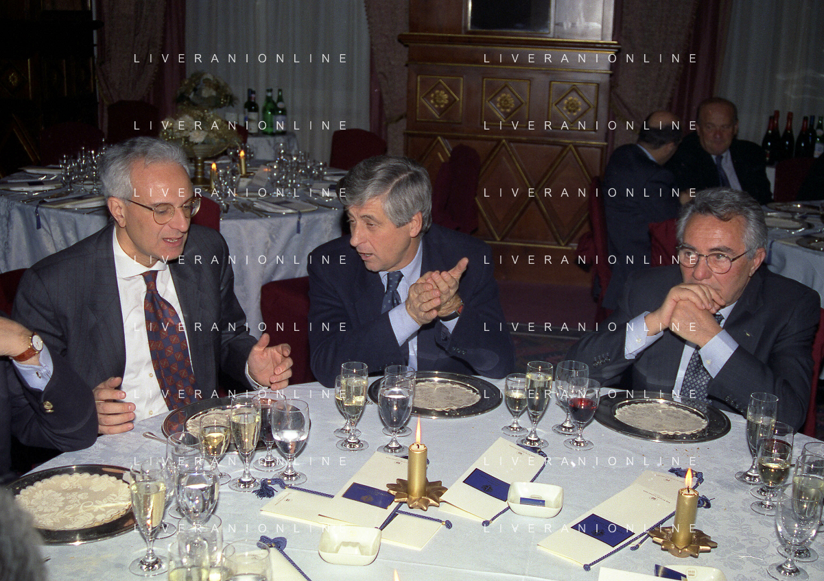 MILANO 14-12-1998 FESTA DI GALA DELL'ASSOCIAZIONE CALCIATORI PER I 30 ANNI DI ATTIVITA NELLA FOTO SERGIO CAMPANA GIANNI RIVERA E DOMENICO DI CARLO AG ALDO LIVERANI SAS