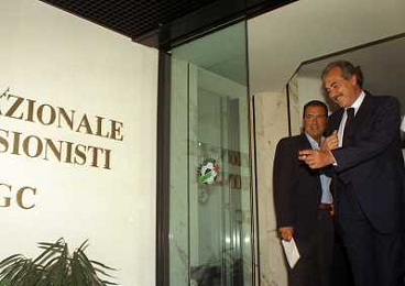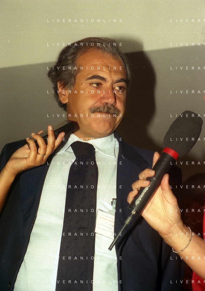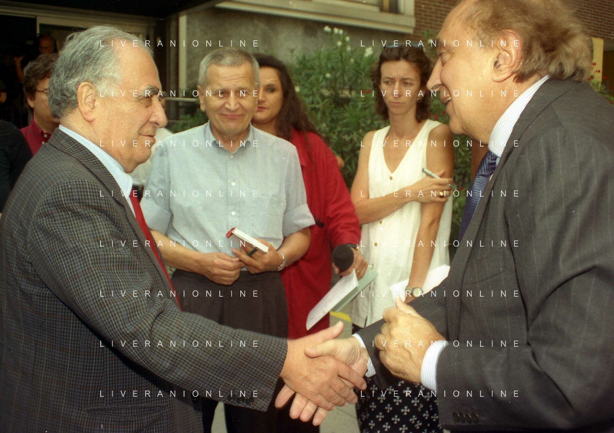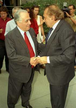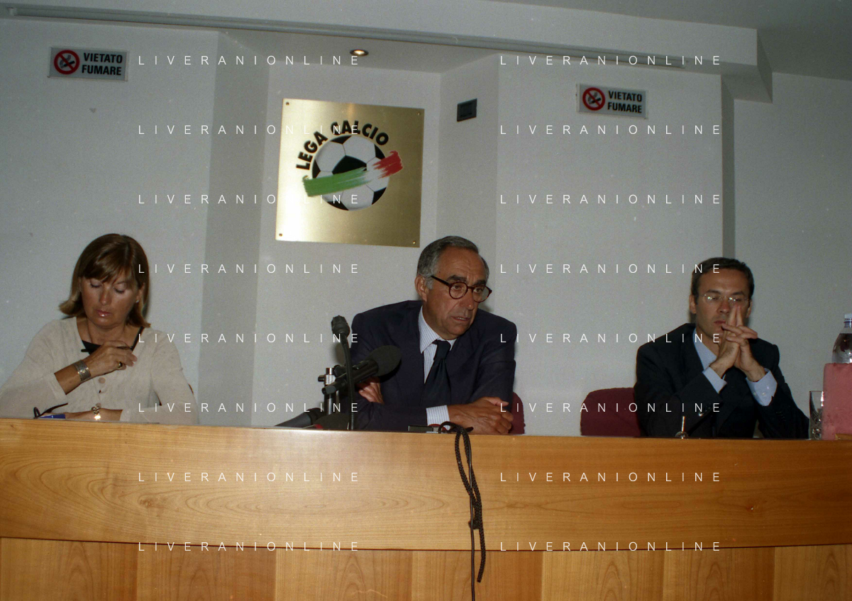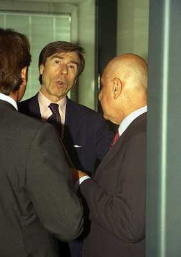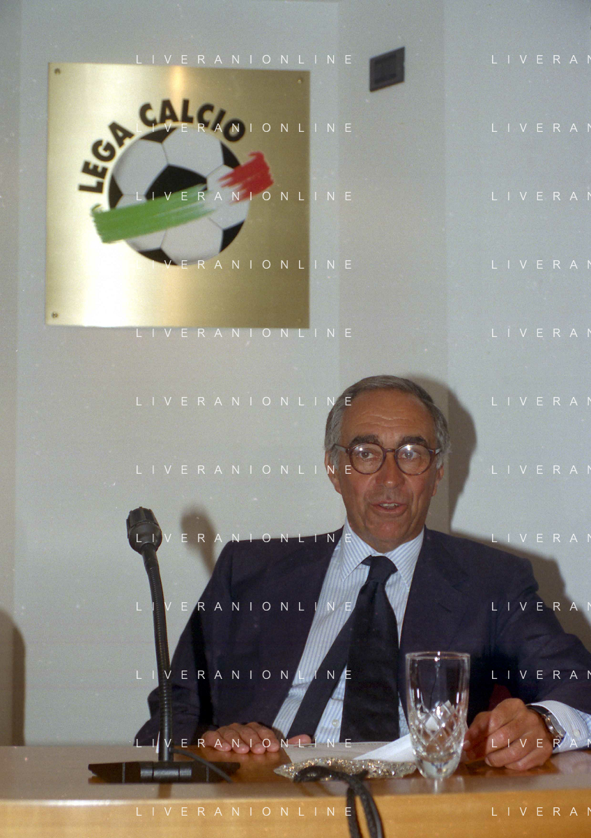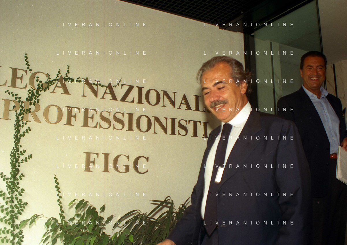 21-08-1999 MILANO SEDE LEGA CALCIO IN VIA ROSSELLINI RIUNIONE DEI PRESIDENTI DI CALCIO NELLA FOTO ARIEDO BRAIDA E ADRIANO GALLIANI AG ALDO LIVERANI SAS