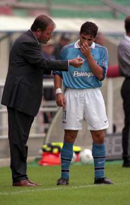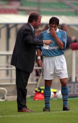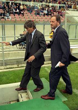 REGGIO EMILIA 1998-1999 CAMPIONATO DI CALCIO SERIE B REGGIANA NAPOLI NELLA FOTO RENZO ULIVIERI ALLENATORE DEL NAPOLI CON MASSIMILIANO ESPOSITO AG ALDO LIVERANI SAS