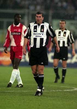 01-04-1998 TORINO STADIO DELLE ALPI CHAMPIONS LEAGUE JUVENTUS MONACO NELLA FOTO ZINEDINE ZIDANE E MARTIN DJETOU AG ALDO LIVERANI SAS