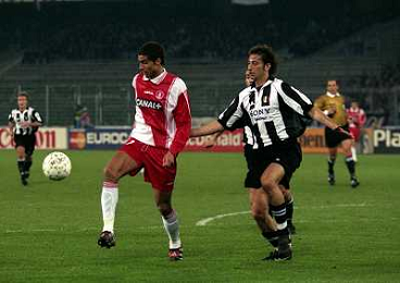01-04-1998 TORINO STADIO DELLE ALPI CHAMPIONS LEAGUEJUVENTUS MONACO NELLA FOTO GIANLUCA PESSOTTO E MARTIN DJETOU AG ALDO LIVERANI SAS