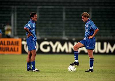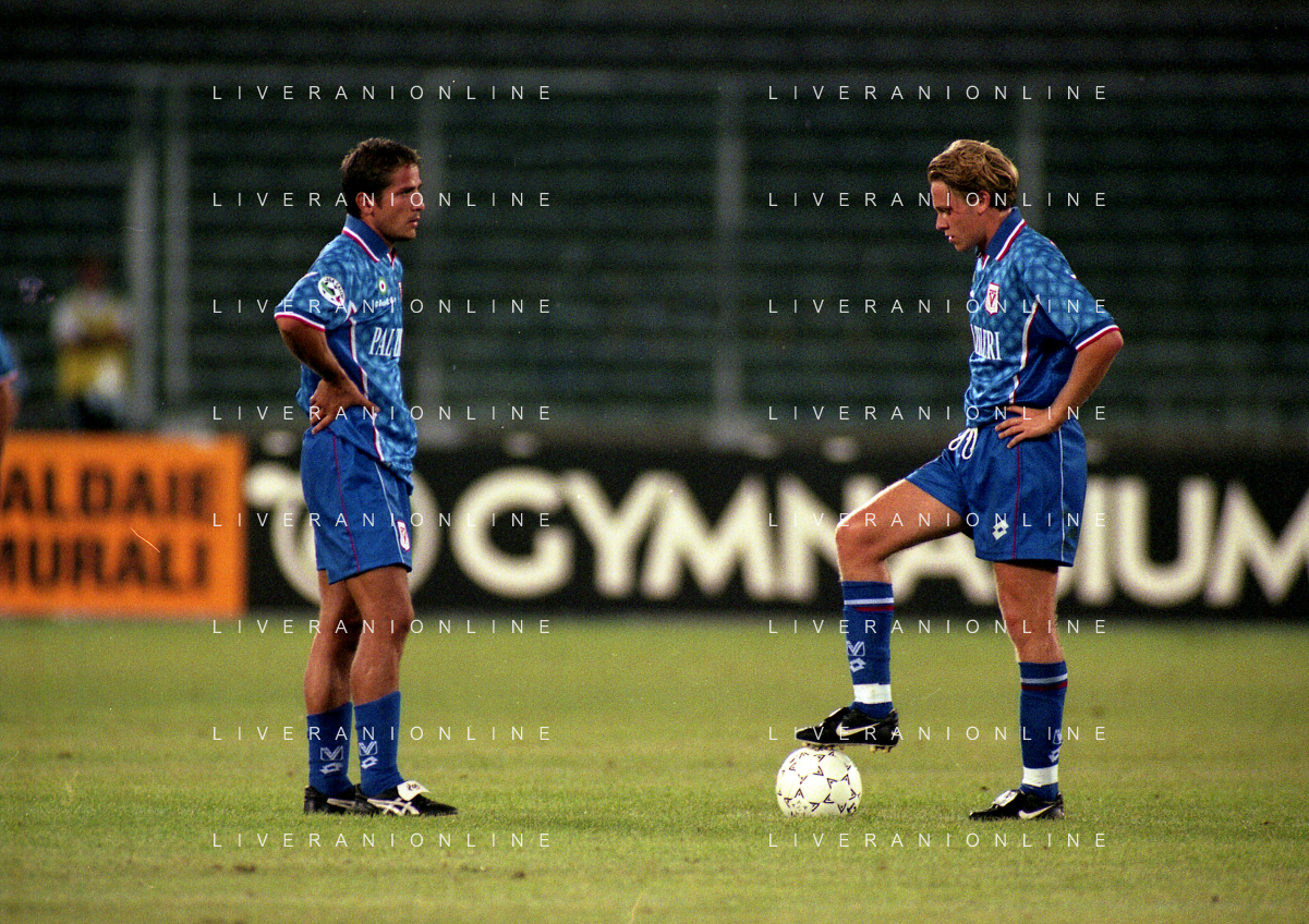 TORINO FINALE SUPERCOPPA ITALIANA 23-08-1997 JUVENTUS VICENZA NELLA FOTO PASQUALE LUISO E ROBERTO BARONIO AG ALDO LIVERANI SAS