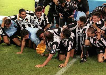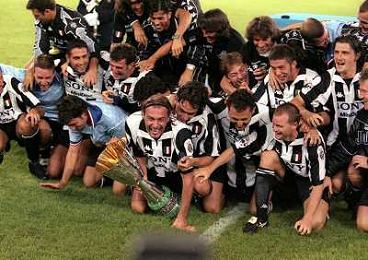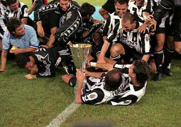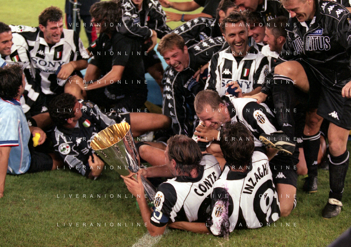 TORINO FINALE SUPERCOPPA ITALIANA 23-08-1997 JUVENTUS VICENZA NELLA FOTO I GIOCATORI DELLA JUVENTUS CON LA SUPER COPPA ITALIANA AG ALDO LIVERANI SAS