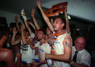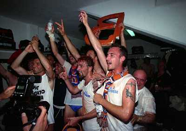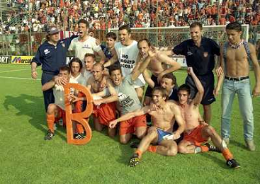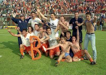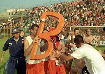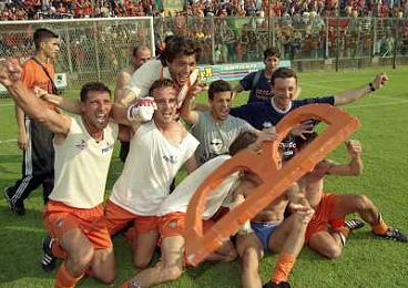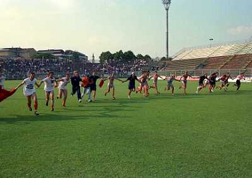CREMONA 13-06-1999 FINALE PER LA PROMOZIONE IN SERIE B TRA PISTOIESE E LUMEZZANE NELLA FOTO ESULTANZA GIOCATORI PISTOIESE A FINE GARA AG ALDO LIVERANI SAS