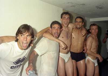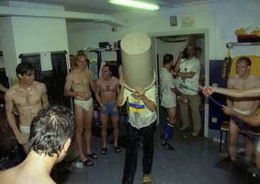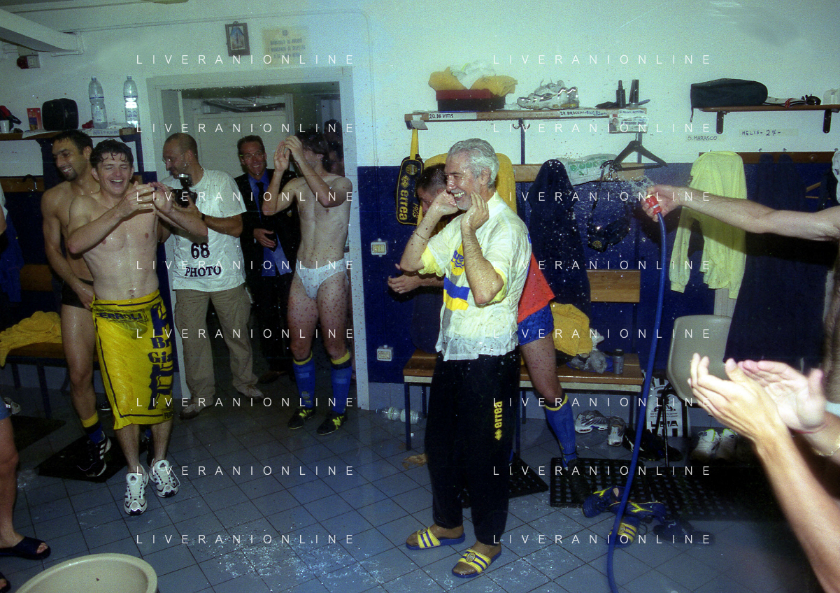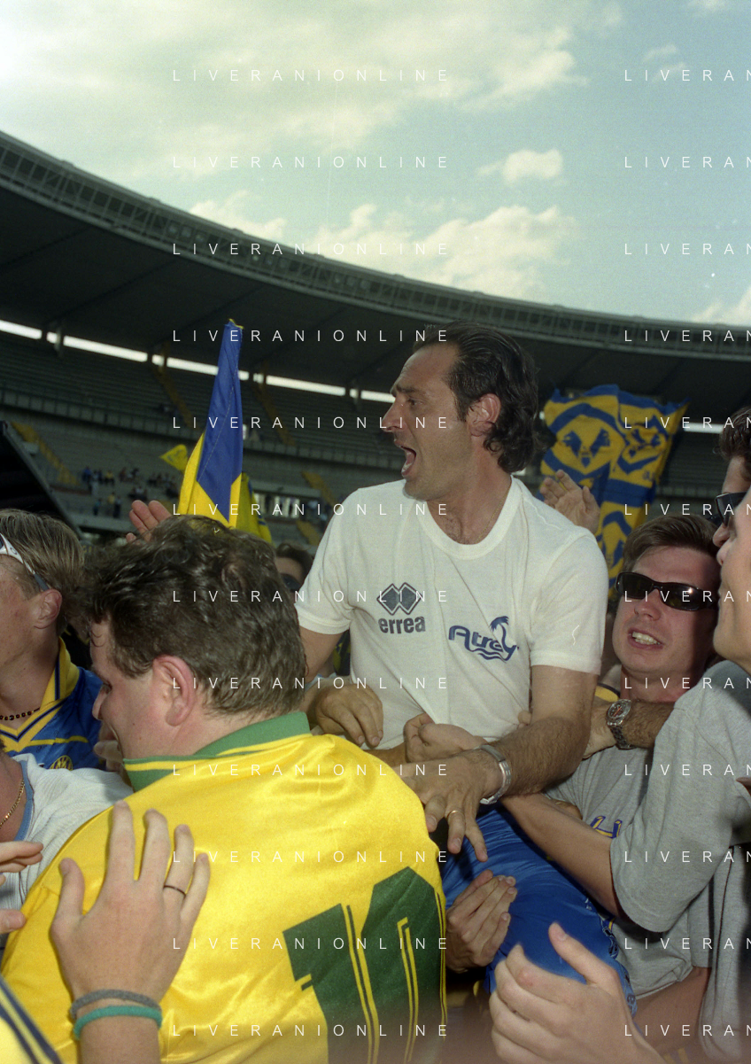 06-06-1999 CAMPIONATO DI CALCIO SERIE B VERONA -NAPOLI NELLA FOTO I GIOCATORI DEL VERONA FESTEGGIANO LA PROMOZIONE IN SERIE A CESARE PRANDELLI AG ALDO LIVERANI SAS