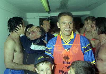 06-06-1999 CAMPIONATO DI CALCIO SERIE B VERONA -NAPOLI NELLA FOTO GIANBATTISTA PASTORELLO FESTEGGIA LA PROMOZIONE IN SERIE A AG ALDO LIVERANI SAS