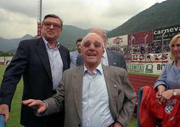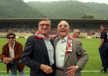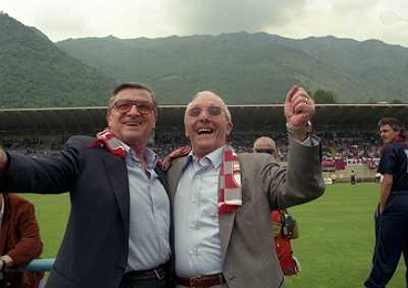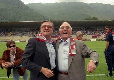 LUMEZZANE 31-05-1998 CAMPIONATO DI LEGA PRO LUMEZZANE CREMONESE PROMOZIONE IN SERIE B NELLA FOTO CARLO SASSI E DOMENICO LUZZARA PRESIDENTE CREMONESE AG ALDO LIVERANI SAS