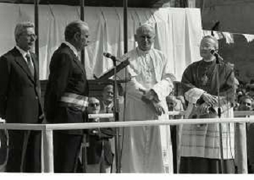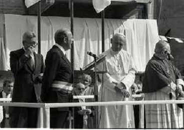 NEG-RETROSPETTIVA PAPA GIOVANNI II -KAROL JOZEF WOJTYLA NELLA FOTO ARNALDO FORLANI CON PAPA GIOVANNI II -KAROL JOZEF WOJTYLA IN VISITA A FANO NELL'ANNO 1984 AG ALDO LIVERANI SAS