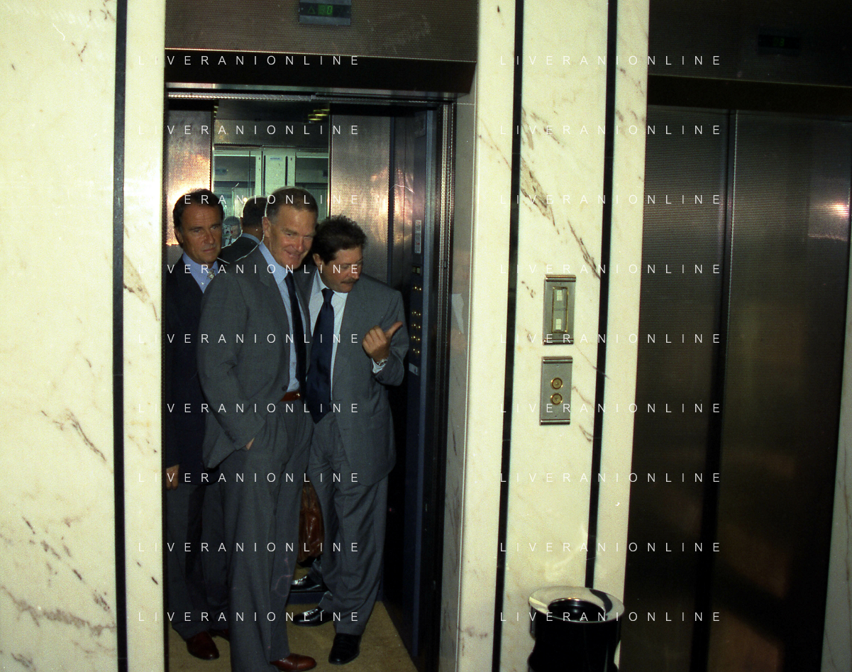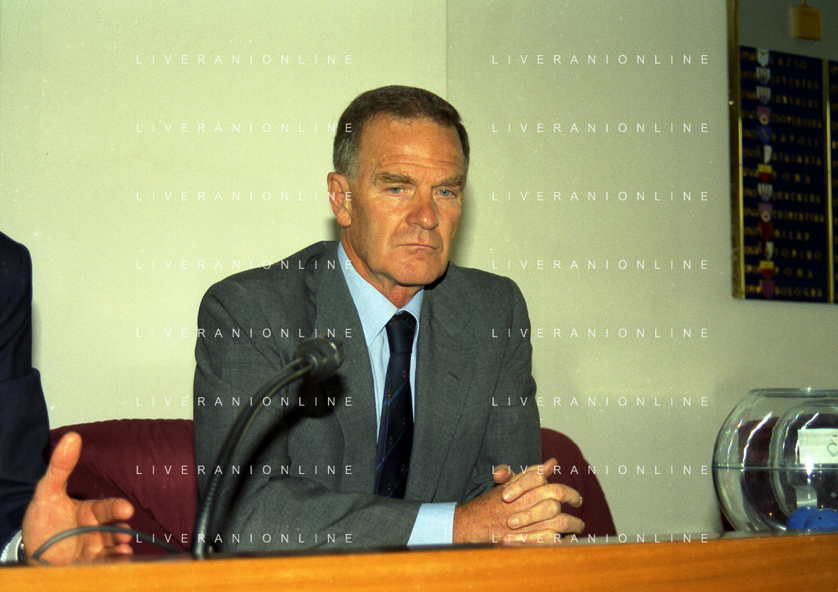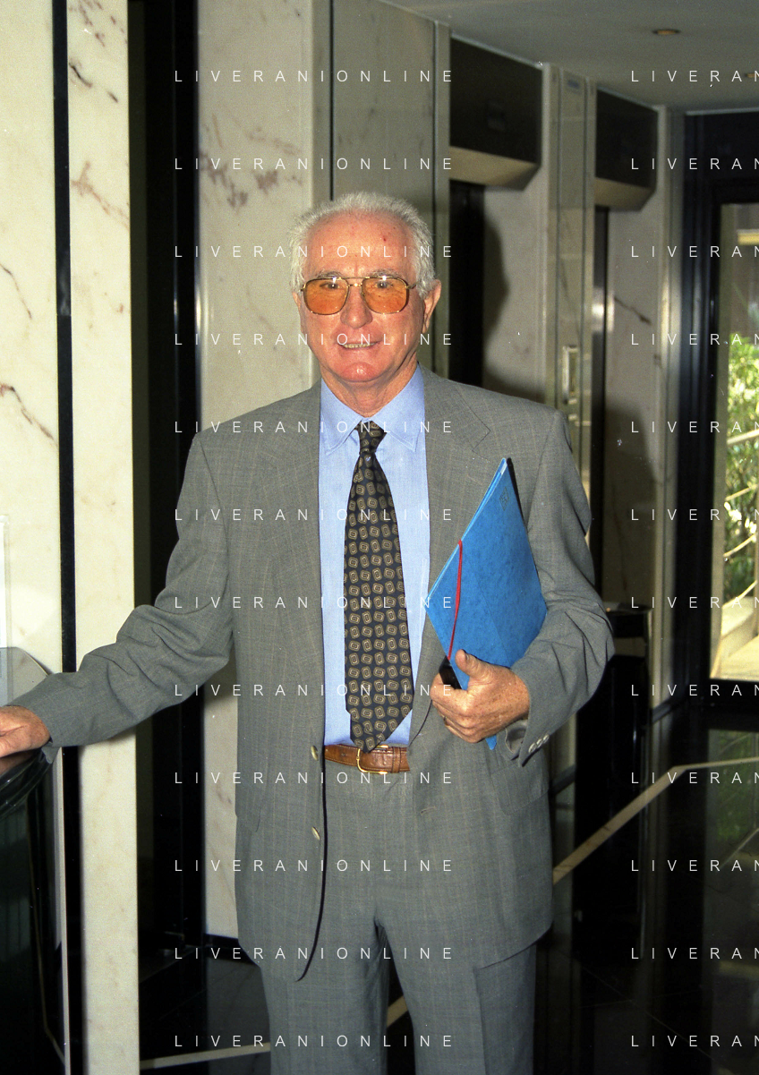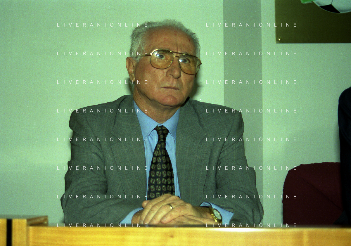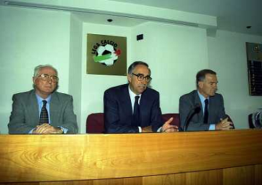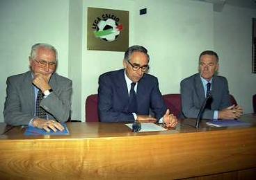 MILANO 29-09-1997 SEDE DELLA LEGA CALCIO IN VIA ROSSELLINI CONFERENZA STAMPA TRA LEGA CALCIO E AIC NELLA FOTO SERGIO CAMPANA E SILVANO MAIOLI SEGRETARIO AIC AG ALDO LIVERANI SAS