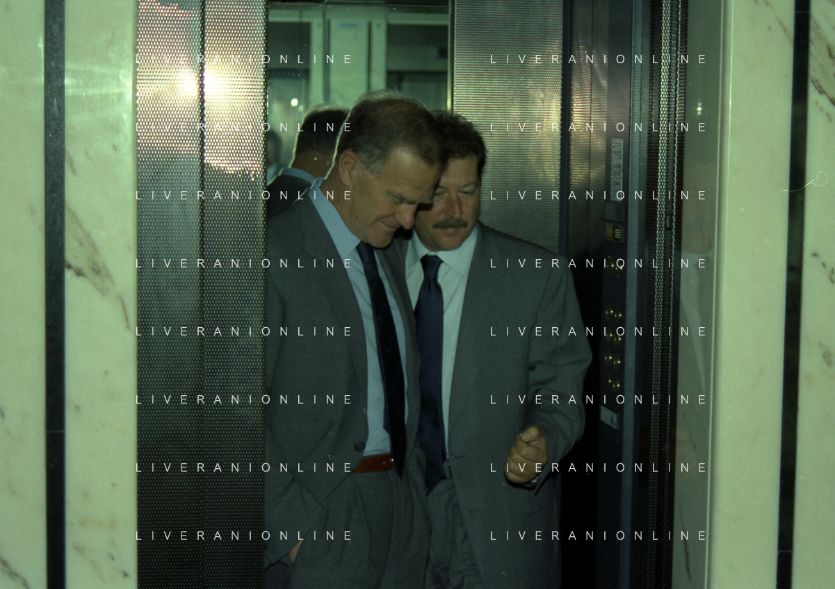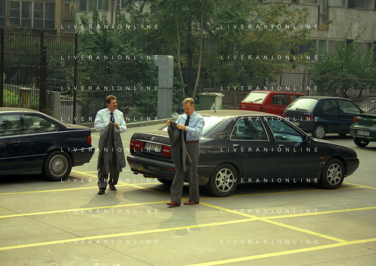 MILANO 29-09-1997 SEDE DELLA LEGA CALCIO IN VIA ROSSELLINI CONFERENZA STAMPA TRA LEGA CALCIO E AIC NELLA FOTO SERGIO CAMPANA CON SILVANO MAIOLI SEGRETARIO AIC AG ALDO LIVERANI SAS