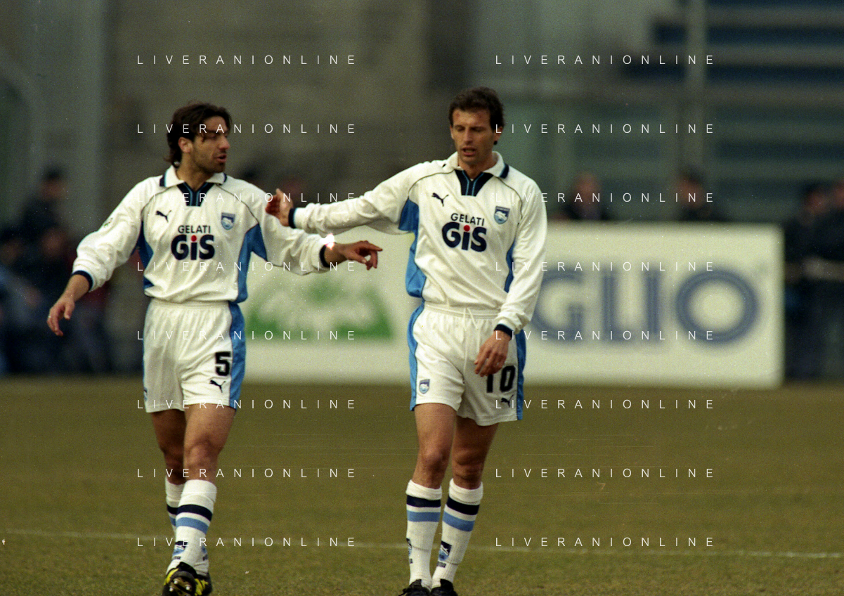28-02-1999 REGGIO EMILIA CAMPIONATO DI SERIE B REGGIANA PESCARA NELLA FOTO RICCARDO MASPERO E MICHELE GELSI AG ALDO LIVERANI SAS