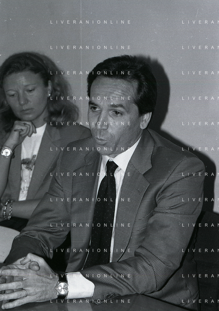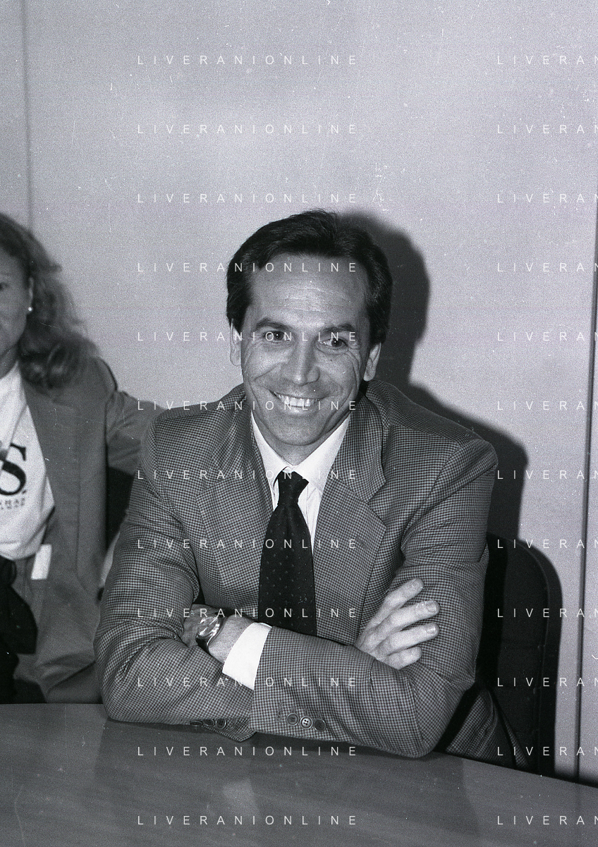NEG-RETROSPETTIVA MASSIMO MORETTI AMMINISTRATORE DEL INTER CALCIO NELLA FOTO MASSIMO MORETTI OSPITE DELL REDAZIONE DELLA GAZZETTA DELLO SPORT SETTEMBRE 1992 A MILANO AG ALDO LIVERANI SAS