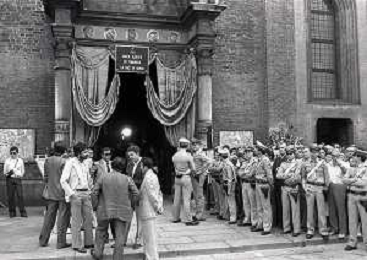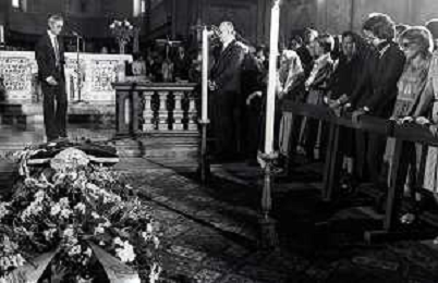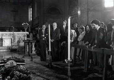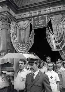 RETROSPETTIVA GENERALE CARLO ALBERTO DALLA CHIESA NELLA FOTOI FUNERALI NELLA CHIESA DI SANTA MARIA DELLE GRAZIA A MILANO DEL GENERALE CARLO ALBERTO DALLA CHIESA ELA MOGLIE EMANUELA SETTI CARRARO UCCISI DALLA MAFIA A PALERMO NELL'ANNO 1982 AG ALDO LIVERANI SAS