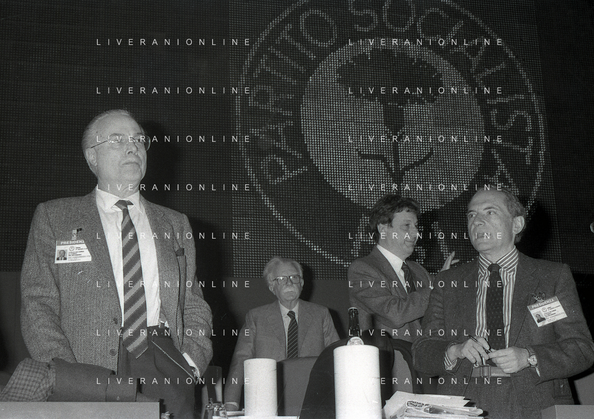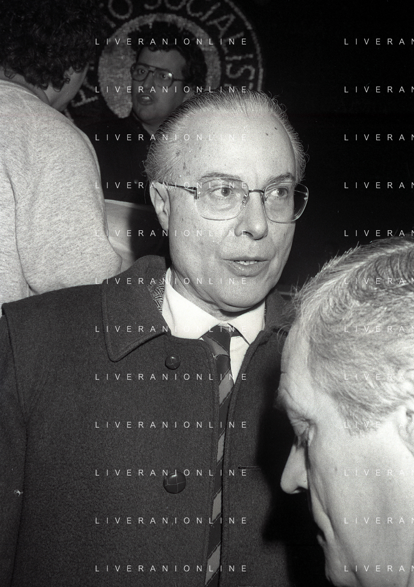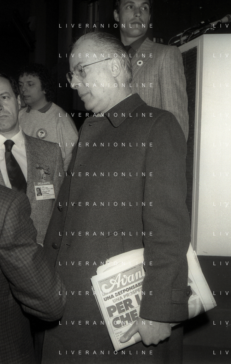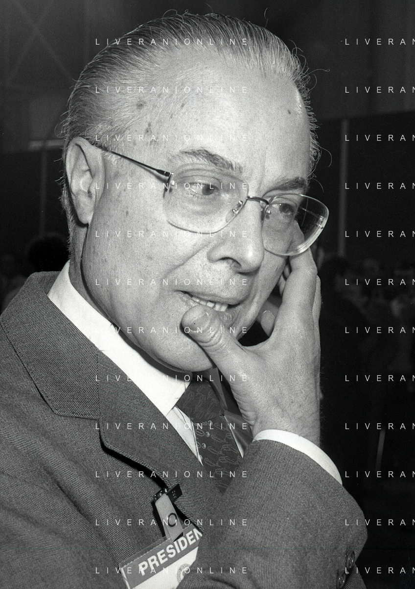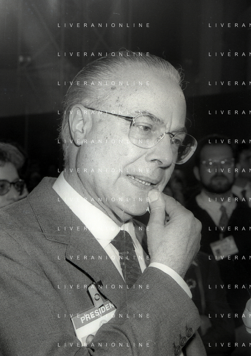 NEG-RETROSPETTIVA LELIO LAGORIO POLITICO NELLA FOTO LELIO LAGORIO AL CONGRESSO DEL PARTITO SOCIALISTA ITALIANO A RIMINI NELL'ANNO 1987 AG ALDO LIVERANI SAS