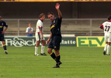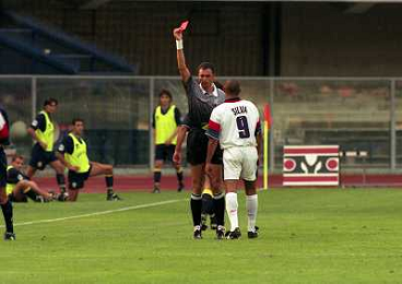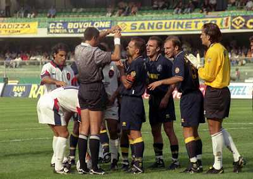 21-09-1997 CAMPIONATO DI SERIE B VERONA CAGLIARI NELLA FOTO ESPULSIONE DARIO SILVA ARBITRO ROSSI AG ALDO LIVERANI SAS