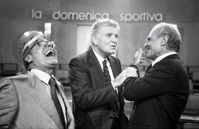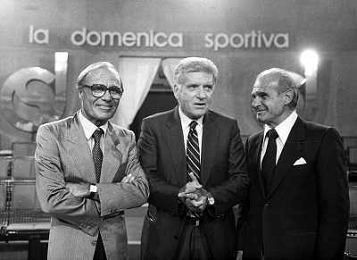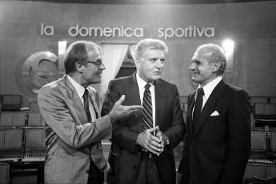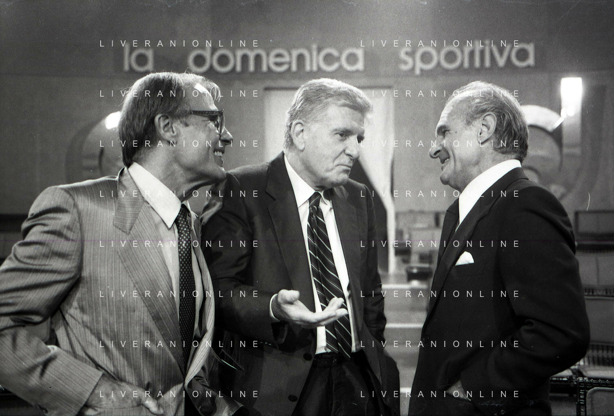 TITO STAGNO giornalista e conduttore televisivo italiano - Retrospettiva nella foto con Bruno Pizzul e Vitaletti ©ARCHIVIO / AGENZIA ALDO LIVERANI SAS