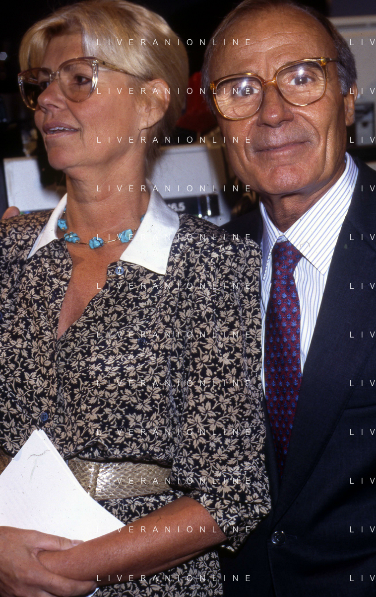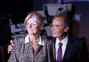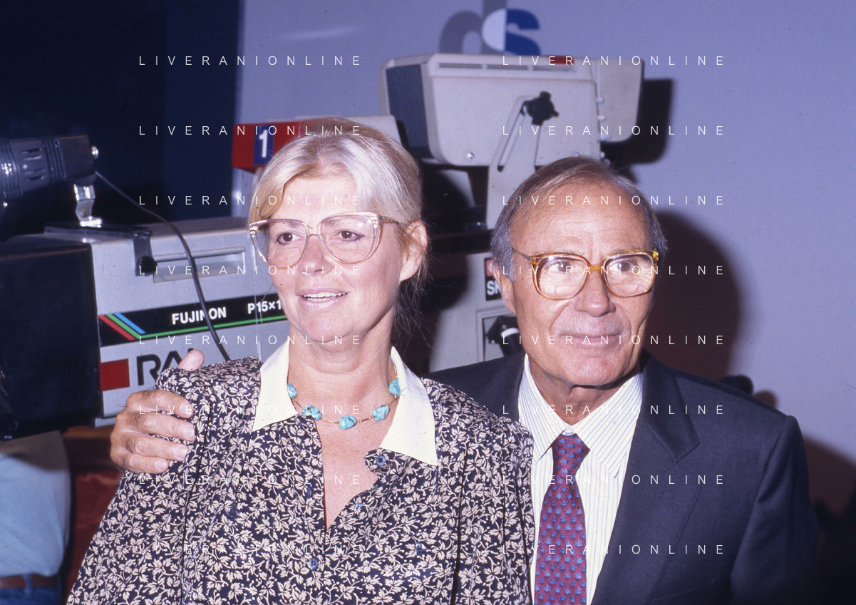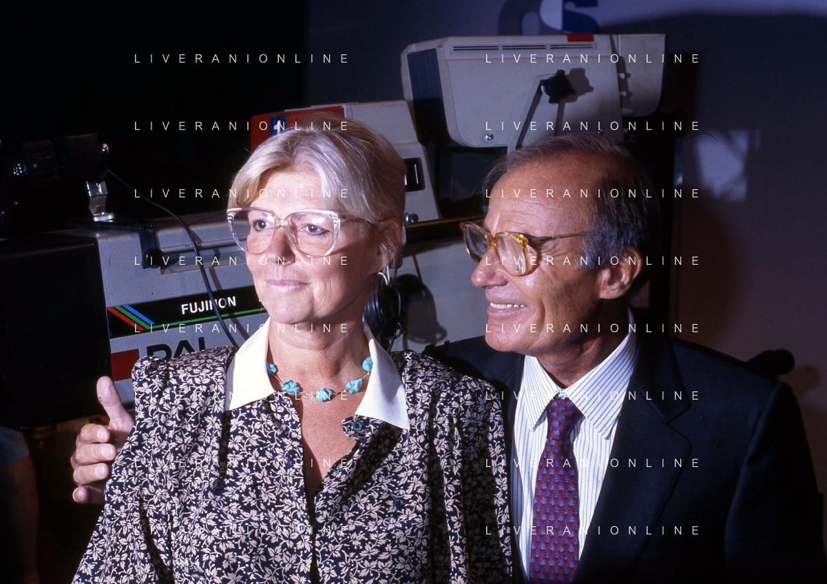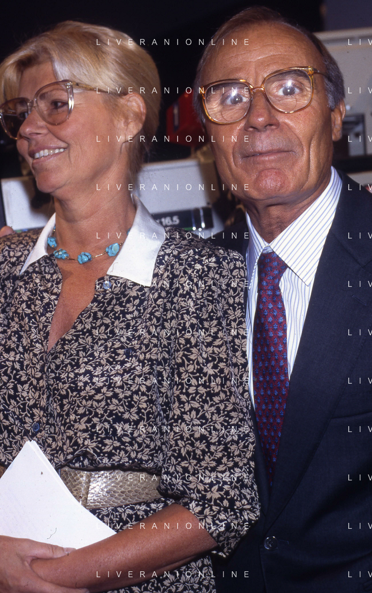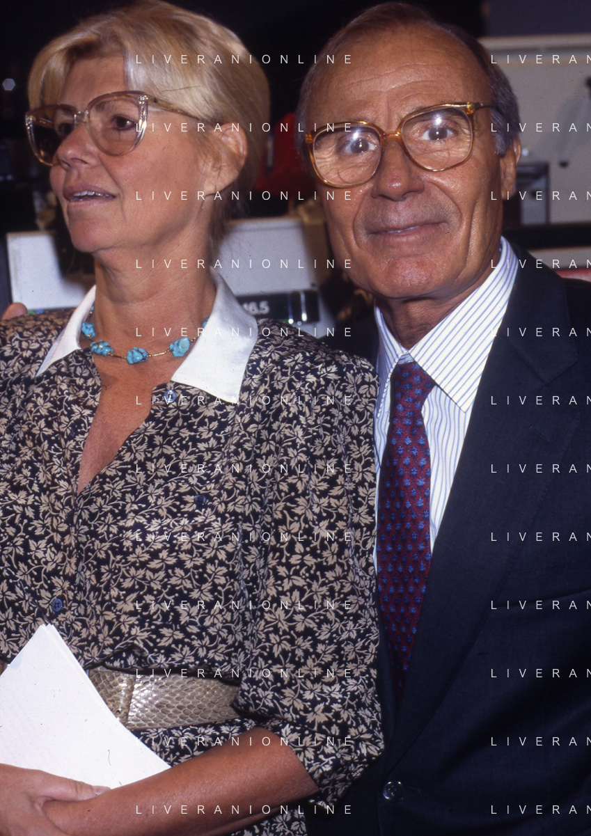 TITO STAGNO giornalista e conduttore televisivo italiano - Retrospettiva nella foto con la regista della trasmissione ' La Domenica Sportiva ' Luciana Veschi D'Asnasch nel 1991 ©ARCHIVIO / AGENZIA ALDO LIVERANI SAS