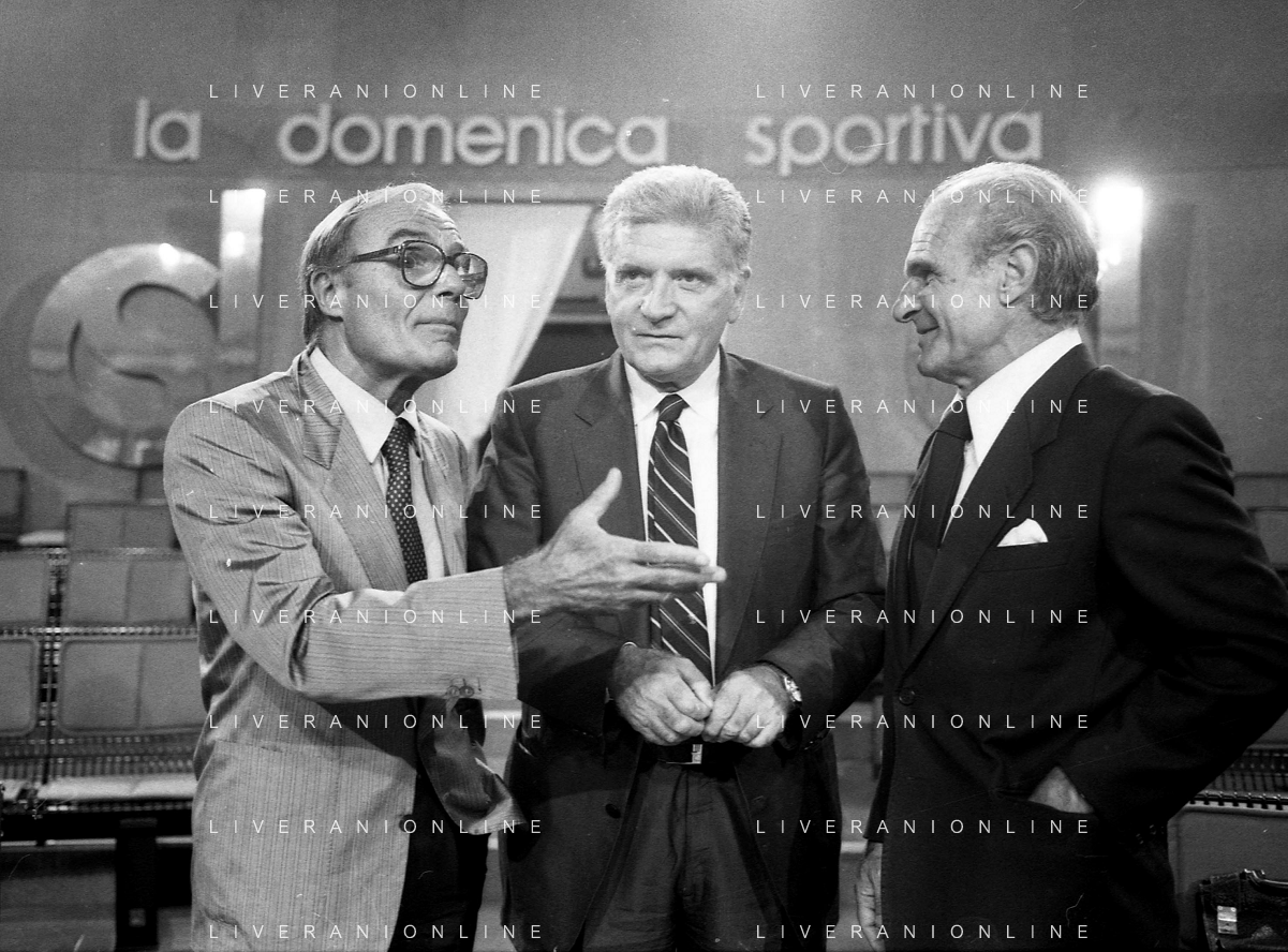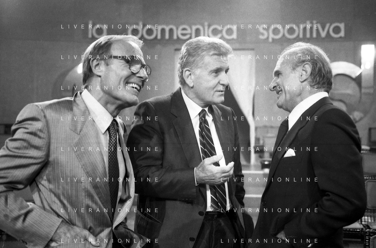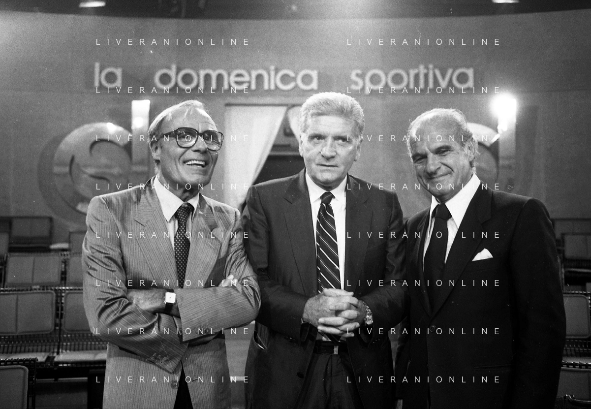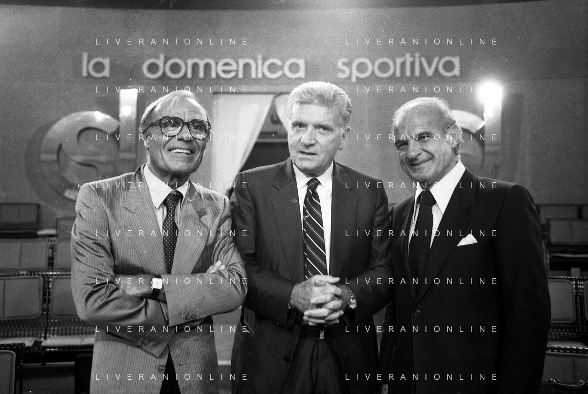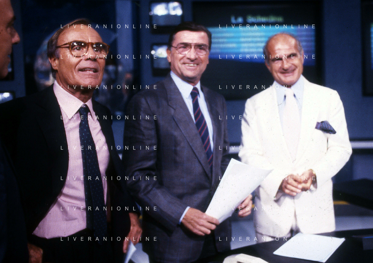 TITO STAGNO giornalista e conduttore televisivo italiano - Retrospettiva nella foto con Sandro Ciotti e Carlo Sassi nel 1986 ©ARCHIVIO / AGENZIA ALDO LIVERANI SAS