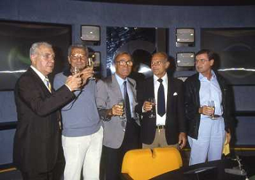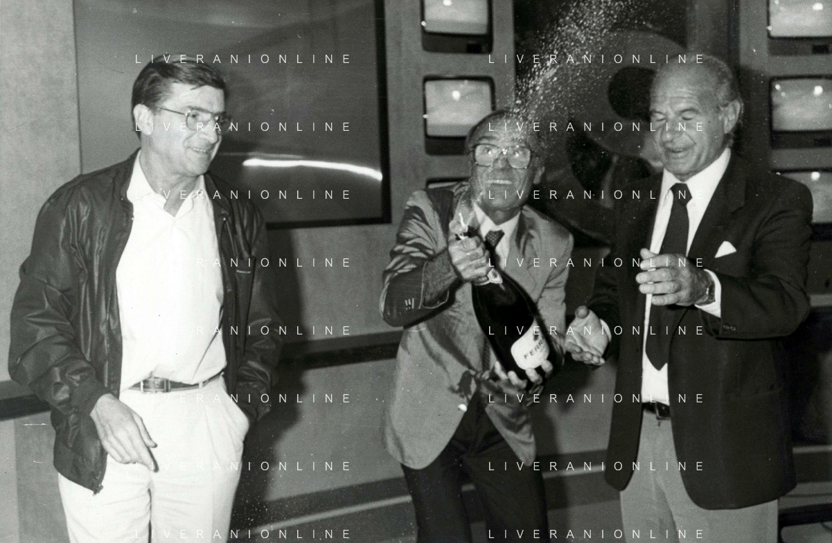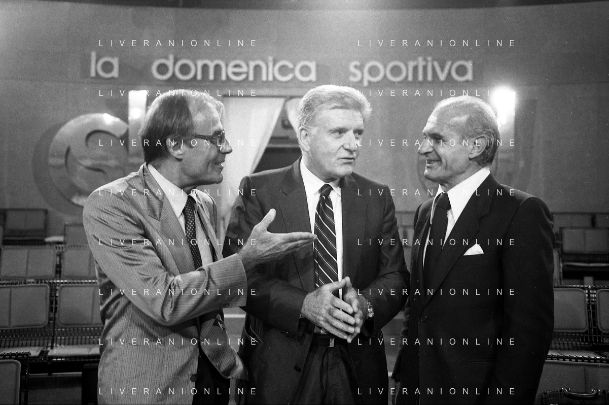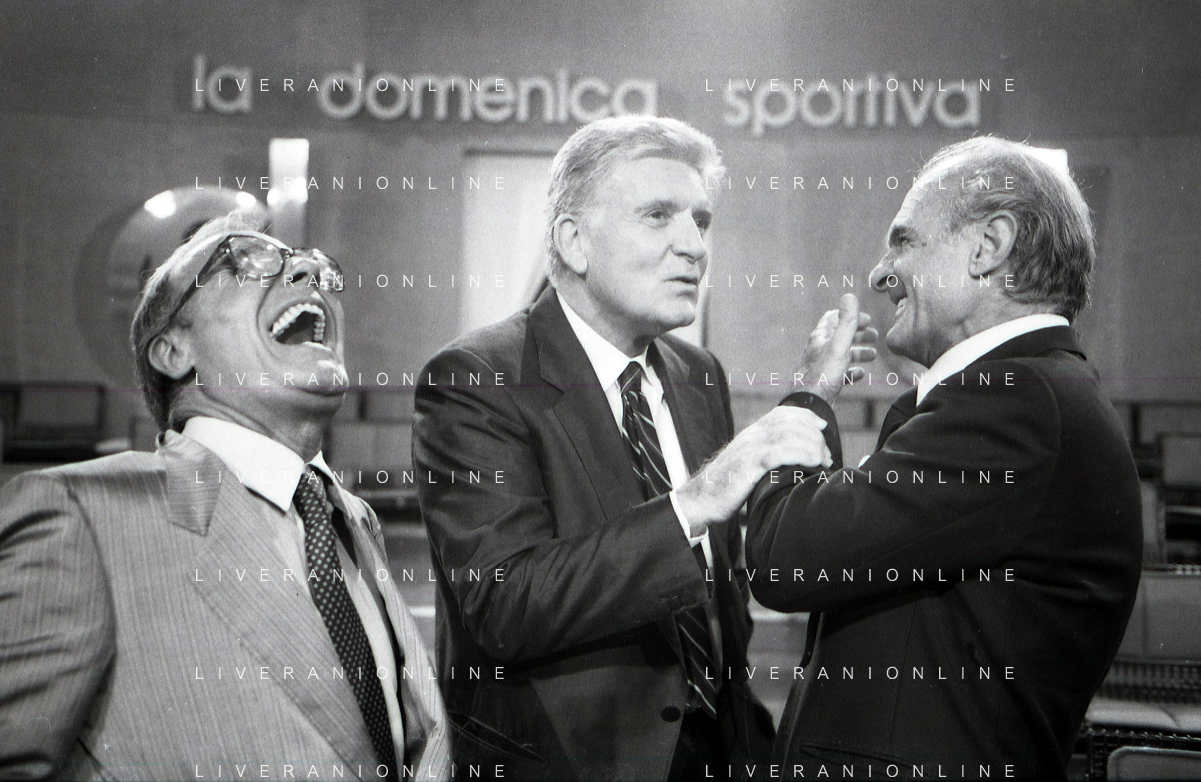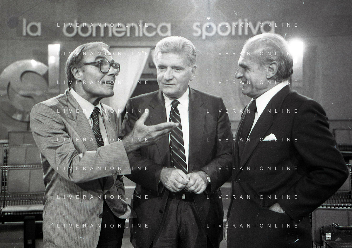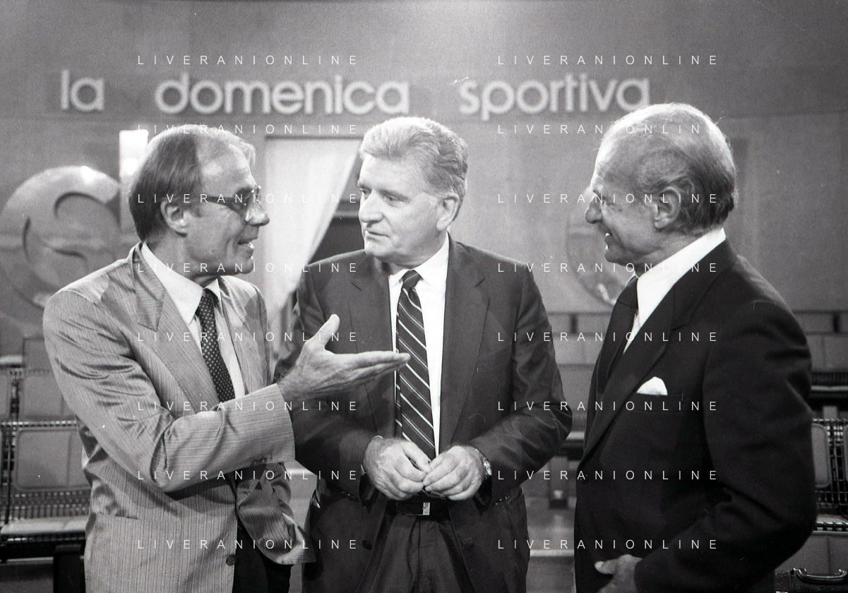 TITO STAGNO giornalista e conduttore televisivo italiano - Retrospettiva nella foto con Sandro Ciotti e Carlo Sassi nel 1986 ©ARCHIVIO / AGENZIA ALDO LIVERANI SAS