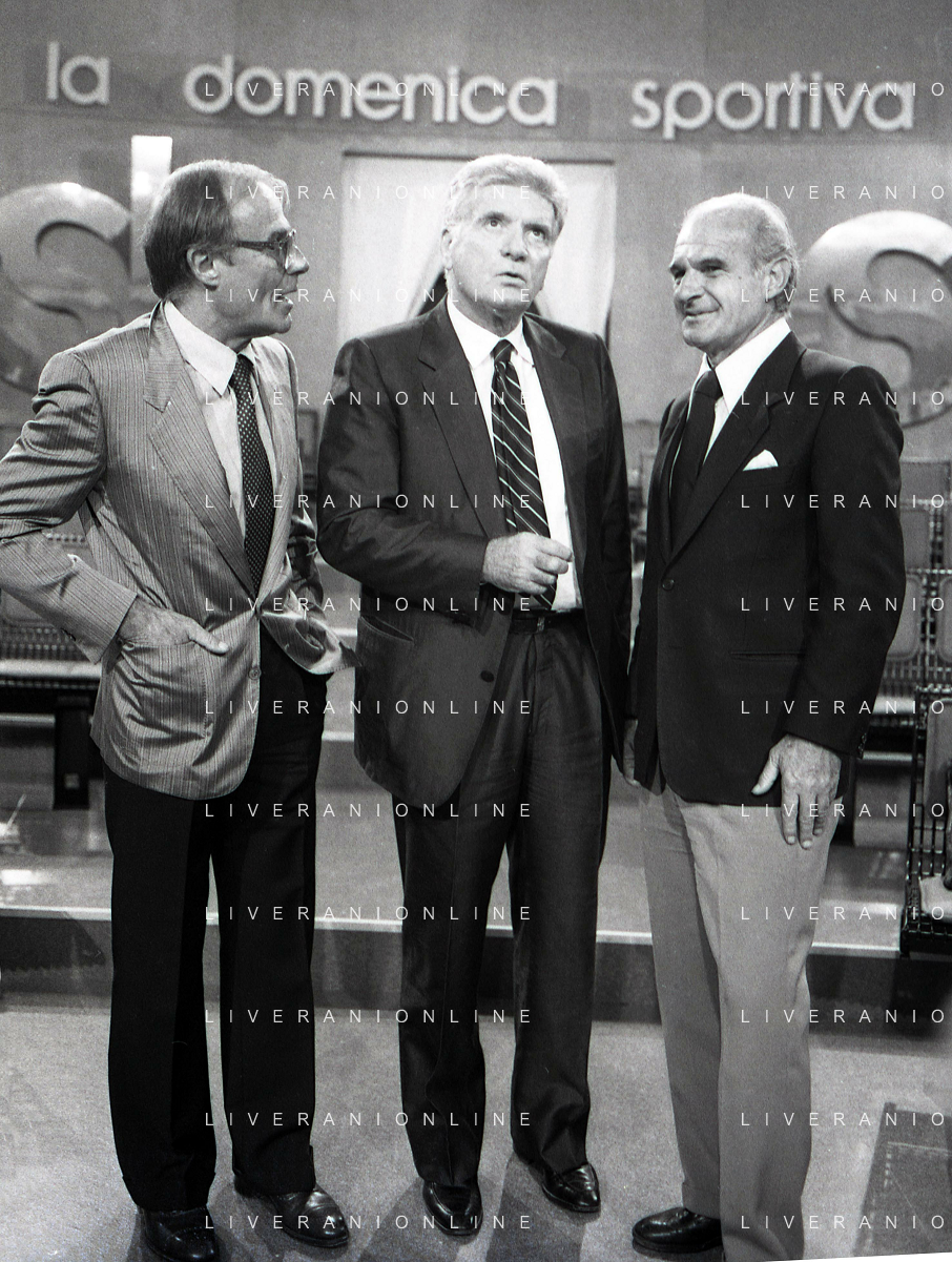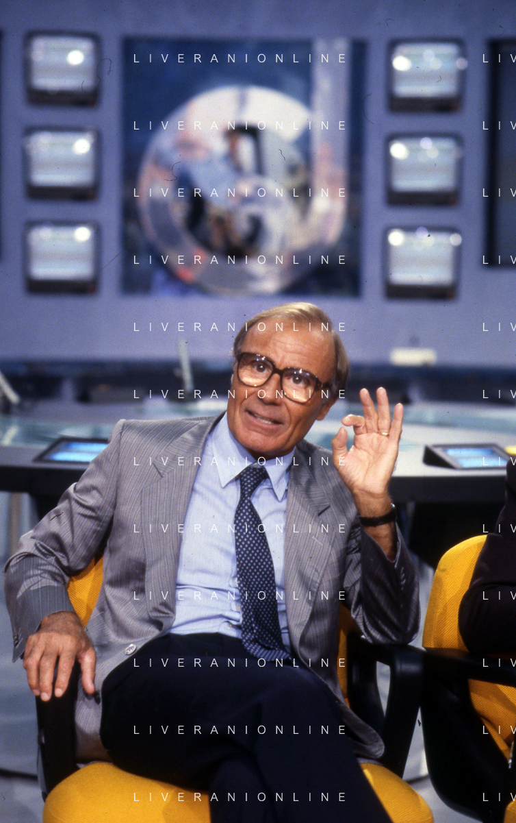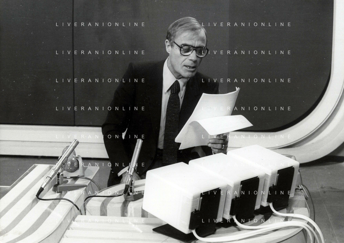 TITO STAGNO giornalista e conduttore televisivo italiano - Retrospettiva nella foto alla trasmissione televisiva 'La Domenica Sportiva' a Milano nel 1985 ©ARCHIVIO / AGENZIA ALDO LIVERANI SAS