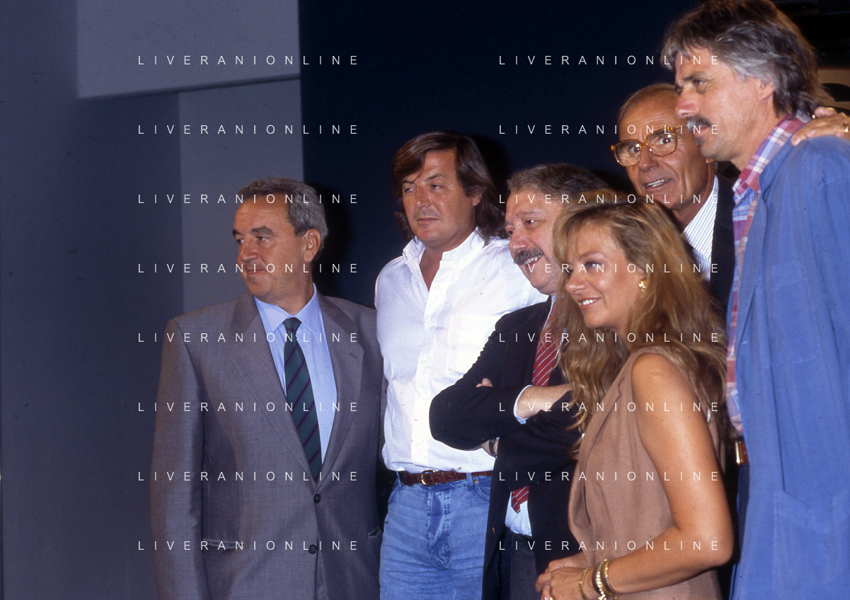 TITO STAGNO giornalista e conduttore televisivo italiano - Retrospettiva nella foto con Marina Perzy, Aldo Agroppi, Gianni Mina', Adriano Panatta e Bruno Pizzul a ' La Domenica Sportiva ' nel 1991 ©ARCHIVIO / AGENZIA ALDO LIVERANI SAS