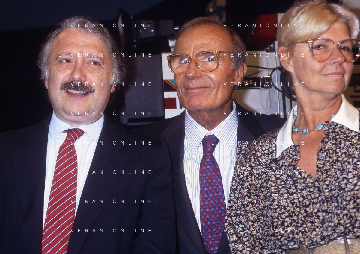 TITO STAGNO giornalista e conduttore televisivo italiano - Retrospettiva nella foto con Sandro Ciotti e e Sergio Zavoli nel 1986 ©ARCHIVIO / AGENZIA ALDO LIVERANI SAS