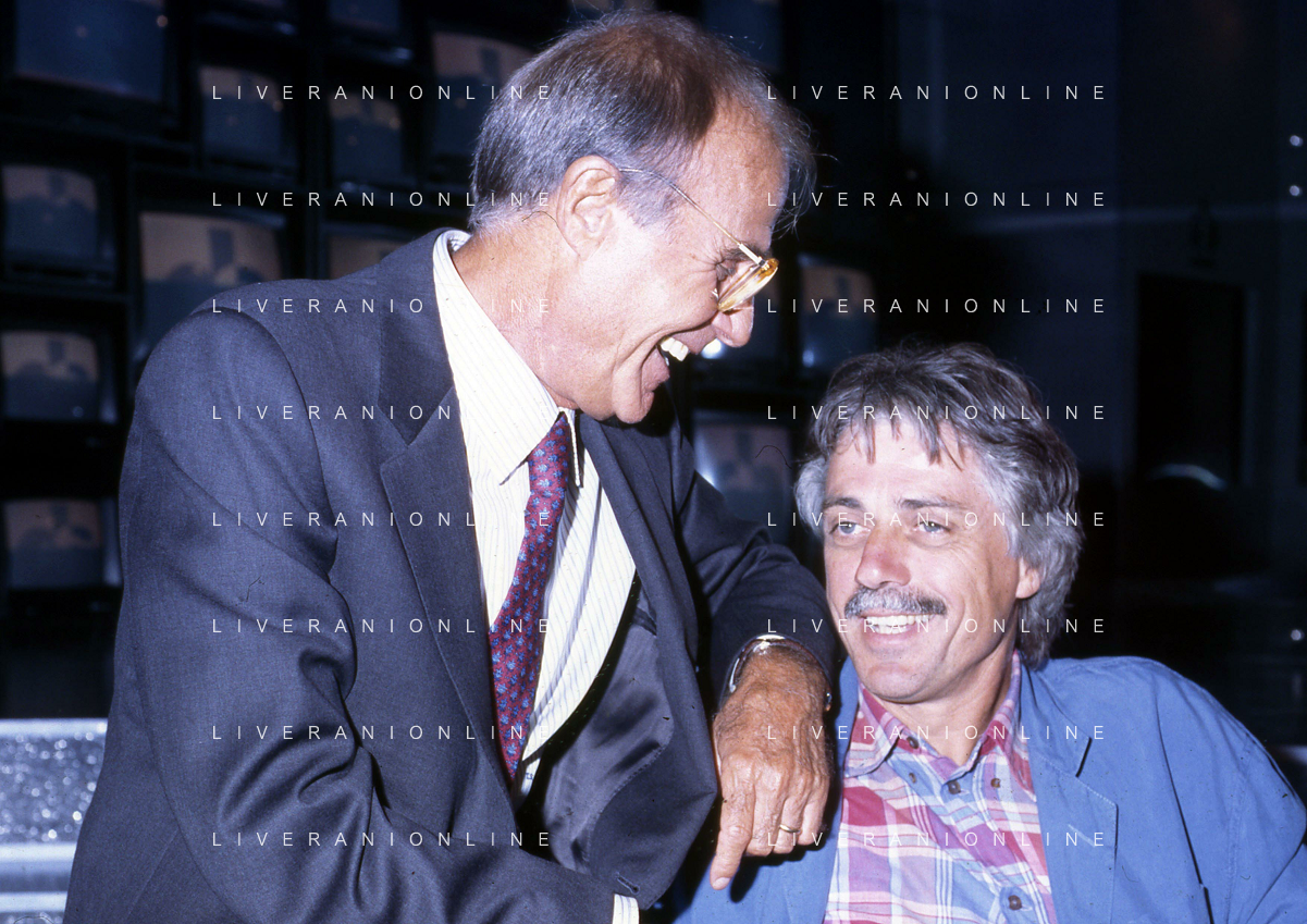 TITO STAGNO giornalista e conduttore televisivo italiano - Retrospettiva nella foto con Aldo Agroppi a ' La Domenica Sportiva ' nel 1991 ©ARCHIVIO / AGENZIA ALDO LIVERANI SAS