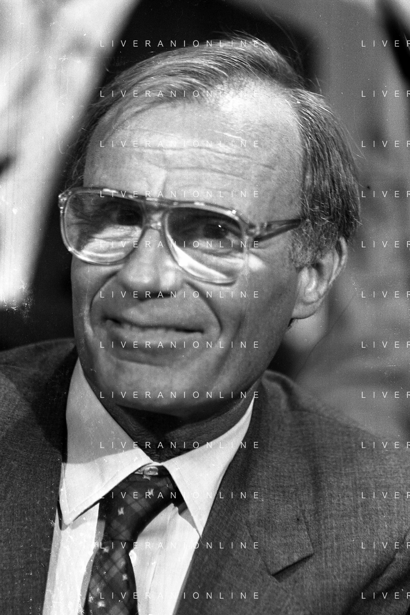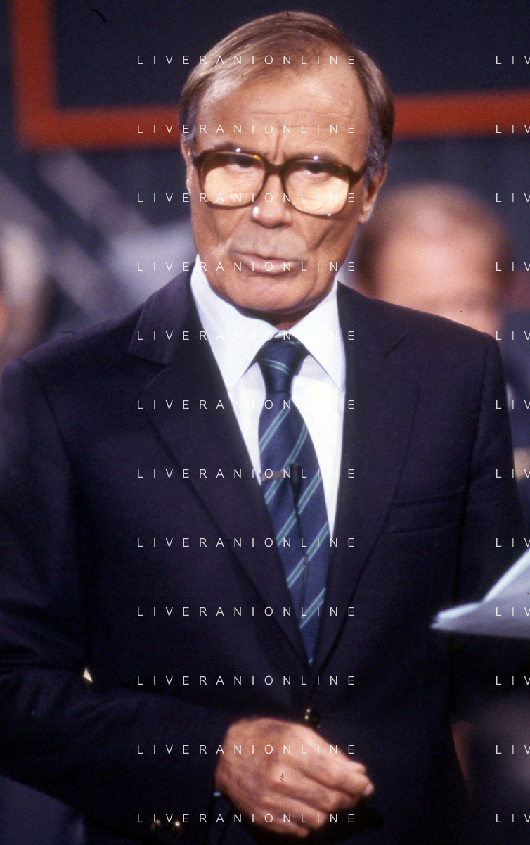 TITO STAGNO giornalista e conduttore televisivo italiano - Retrospettiva nella foto alla trasmissione televisiva 'La Domenica Sportiva' a Milano nel 1986 ©ARCHIVIO / AGENZIA ALDO LIVERANI SAS