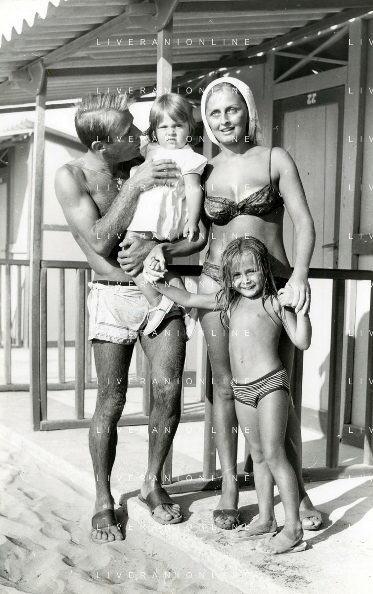 TITO STAGNO giornalista e conduttore televisivo italiano - Retrospettiva nella foto con la famiglia, la moglie Edda Lavezzini e le due figlie Brigida e Caterina ©ARCHIVIO / AGENZIA ALDO LIVERANI SAS