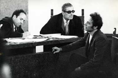 RETROSPETTIVA PIETRO VALPREDA stato un anarchico, scrittore, poeta e ballerino italiano, noto per il suo coinvolgimento nel procedimento giudiziario per la strage di Piazza Fontana NELLA FOTO PIETRO VALPREDA IN TRIBUNALE AG ALDO LIVERANI SAS