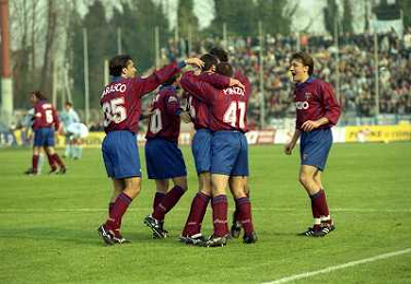 08-03-1998 TREVISO-CAMPIONATO DI CALCIO SERIE B TREVISO REGGIANA 0-5 NELLA FOTO ABBRACCI GIOCATORI REGGIANA AG ALDO LIVERANI SAS