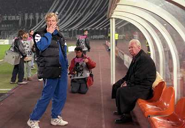 04-03-1998 TORINO- CHAMPIONS LEAGUE JUVENTUS DINAMO KIEV 1-1 NELLA FOTO ALEXEI MIKHAILICHENKO CON VALERY LOBANOSKY AG ALDO LIVERANI SAS