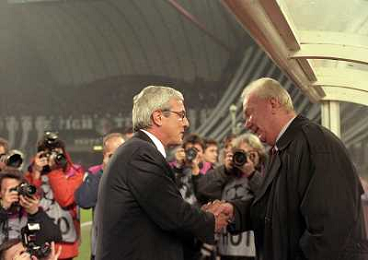 04-03-1998 TORINO- CHAMPIONS LEAGUE JUVENTUS DINAMO KIEV 1-1 NELLA FOTO MARCELLO LIPPI CON VALERY LOBANOSKY AG ALDO LIVERANI SAS