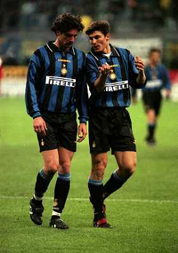 08-04-1997 MILANO- COPPA UEFA INTER MONACO NELLA FOTO ALESSANDRO PISTONE E JAVIER ZANETTI AG ALDO LIVERANI SAS