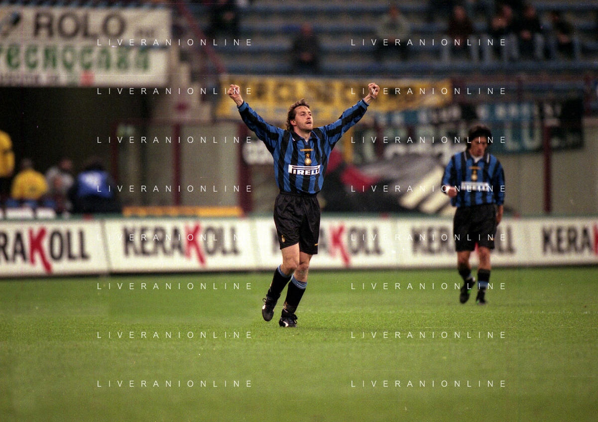08-04-1997 MILANO- COPPA UEFA INTER MONACO NELLA FOTO ESULTANZA MAURIZIO GANZ AG ALDO LIVERANI SAS