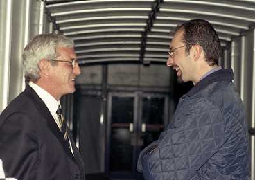 01-04-1998 TORINO-CHAMPIONS LEAGUE SEMIFINALE DI ANDATA JUVENTUS MONACO 4-1 NELLA FOTO MARCELLO LIPPI CON IL GIORNALISTA ALBERTO D'AGUANNO AG ALDO LIVERANI SAS
