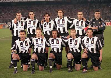 01-04-1998 TORINO-CHAMPIONS LEAGUE SEMIFINALE DI ANDATA JUVENTUS MONACO 4-1 NELLA FOTO FORMAZIONE JUVENTUS DA SIN IN PIEDI ZINEDINE ZIDANE-MORENO TORRICELLI-FILIPPO INZAGHI-MARK IULIANO-PAOLO MONTERO- ANGELO PERUZZI SED DA SIN. ANGELO DI LIVIO-DIDIER DESCHAMPS-EDGARD DAVIDS-GIANLUCA PESSOTTO-ALESSANDRO DEL PIERO AG ALDO LIVERANI SAS