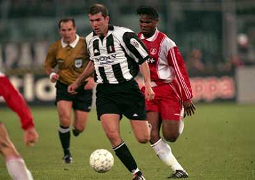 01-04-1998 TORINO-CHAMPIONS LEAGUE SEMIFINALE DI ANDATA JUVENTUS MONACO 4-1 NELLA FOTO ZINEDINE ZIDANE E MARTIN DJETOU AG ALDO LIVERANI SAS