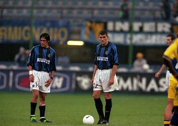 19-09-1999 MILANO CAMPIONATO DI SERIE A INTER PARMA 5-1 NELLA FOTO JAVIER ZANETTI E DINO BAGGIO AG ALDO LIVERANI SAS
