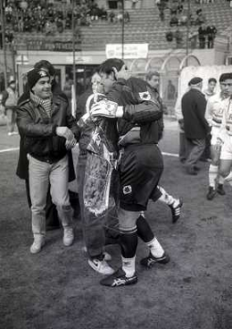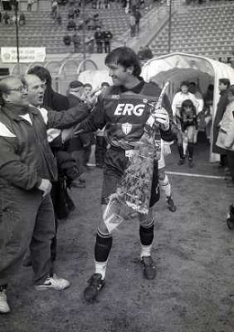 15-01-1995 MILANO-CAMPIONATO DI CALCIO SERIE A INTER SAMPDORIA 2-0 NELLA FOTO WALTER ZENGA SALUTA FRANCO CARAVITA AG ALDO LIVERANI SAS