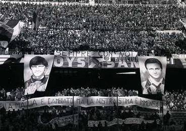 15-01-1995 MILANO-CAMPIONATO DI CALCIO SERIE A INTER SAMPDORIA 2-0 NELLA FOTO CURVA INTER OMAGGIA WALTER ZENGA E RICCARDO FERRI PASSATI ALLA SAMPDORIA AG ALDO LIVERANI SAS