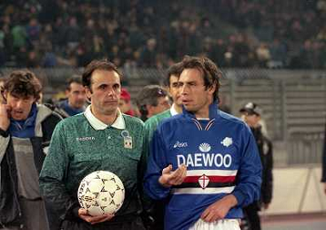 15-02-1998 TORINO-CAMPIONATO DI CALCIO SERIE A JUVENTUS SAMPDORIA 3-0 NELLA FOTO ARBITRO PASQUALE RODOMONTI E ALAIN BOGHOSSIAN AG ALDO LIVERANI SAS