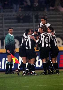 15-02-1998 TORINO-CAMPIONATO DI CALCIO SERIE A JUVENTUS SAMPDORIA 3-0 NELLA FOTO ABBRACCI GIOCATORI JUVENTUS AG ALDO LIVERANI SAS