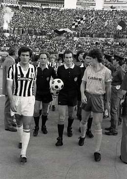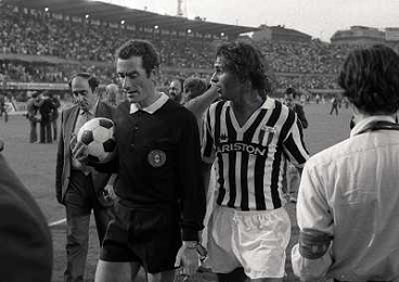 22-06-1983 TORINO- FINALE DI COPPA ITALIA JUVENTUS VERONA 3-0 NELLA FOTO ARBITRO CARLO LONGHI CON ANTONIO CABRINI AG ALDO LIVERANI SAS